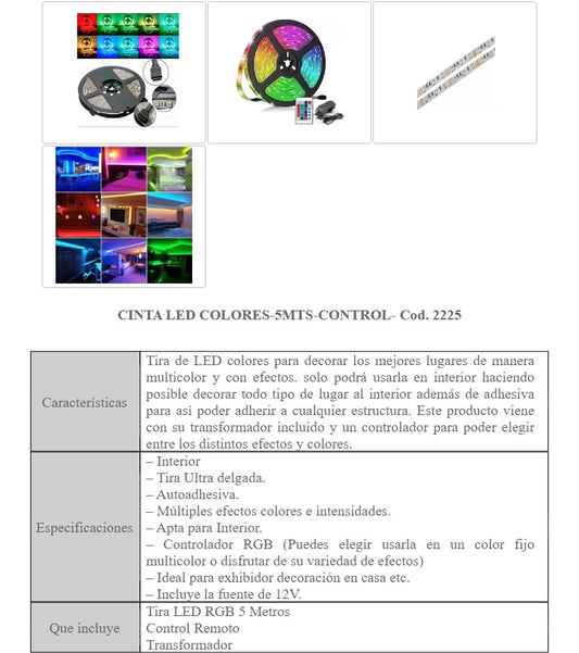AgotadoCINTA LED COLORES-5MTS-CONTROL